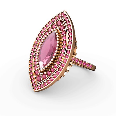Pembe kuvars ve rodolit garnet 8 ayar rose altın yüzük