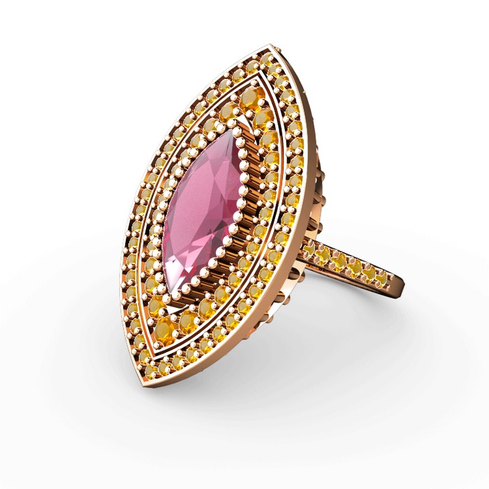 Pembe kuvars ve sitrin 925 ayar rose altın kaplama gümüş yüzük