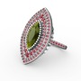 Peridot ve kök yakut 8 ayar beyaz altın yüzük