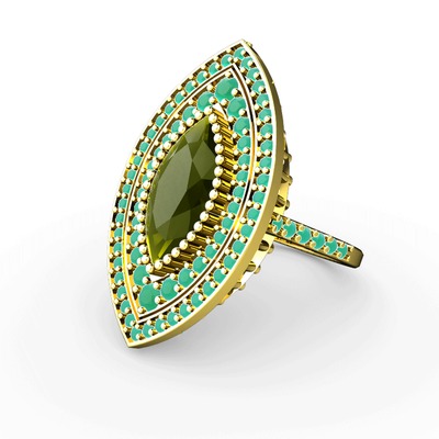 Peridot ve kök zümrüt 14 ayar altın yüzük