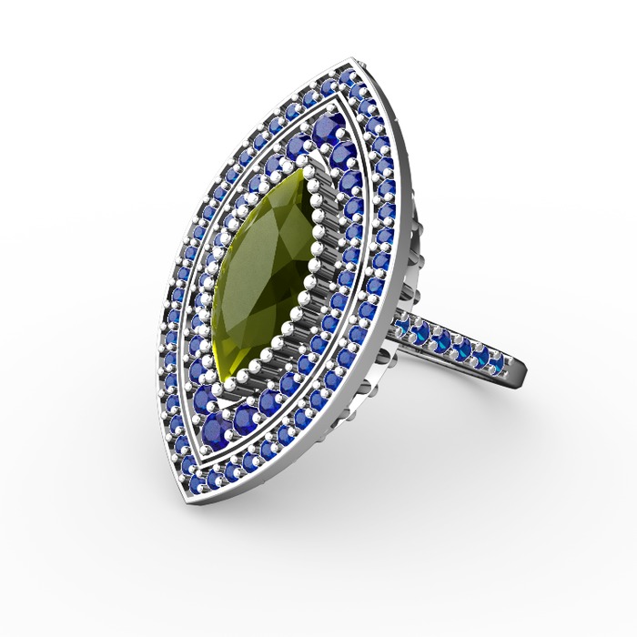 Peridot ve lab safir 14 ayar beyaz altın yüzük
