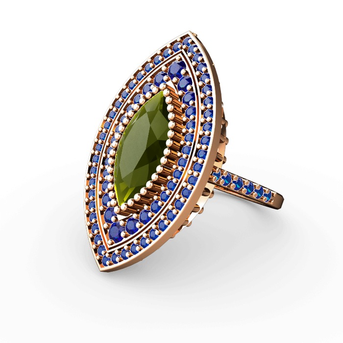 Peridot ve lab safir 18 ayar rose altın yüzük