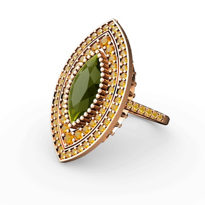 Peridot ve sitrin 18 ayar rose altın yüzük