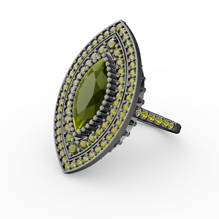 Peridot 925 ayar siyah rodyum kaplama gümüş yüzük