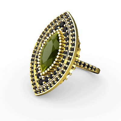 Peridot ve siyah zirkon 14 ayar altın yüzük