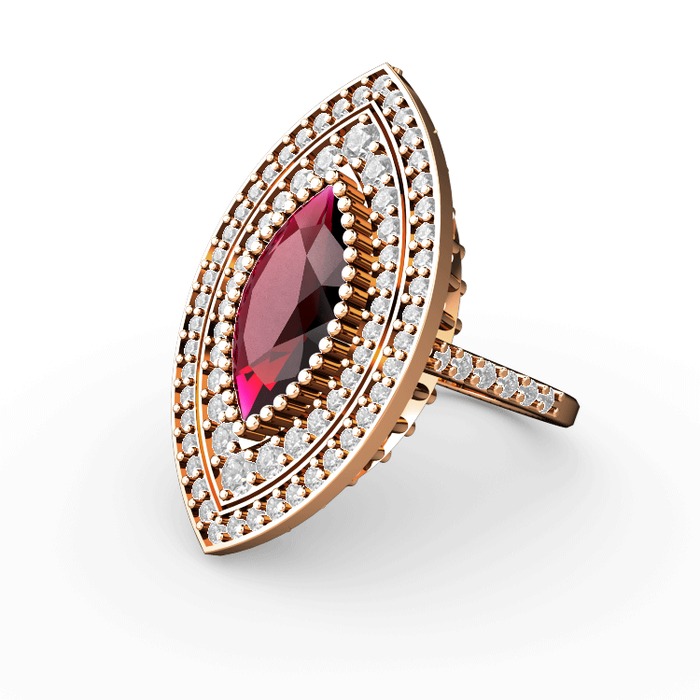 Rodolit garnet ve beyaz zirkon 18 ayar rose altın yüzük