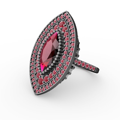 Rodolit garnet ve kök yakut 925 ayar siyah rodyum kaplama gümüş yüzük