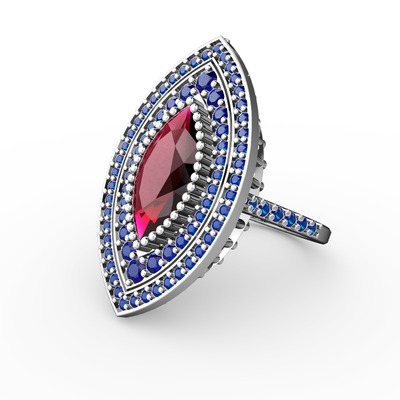 Rodolit garnet ve lab safir 925 ayar gümüş yüzük