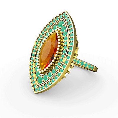 Sitrin ve kök zümrüt 925 ayar altın kaplama gümüş yüzük