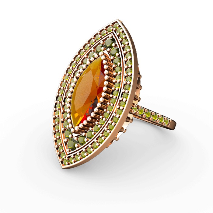 Sitrin ve peridot 925 ayar rose altın kaplama gümüş yüzük
