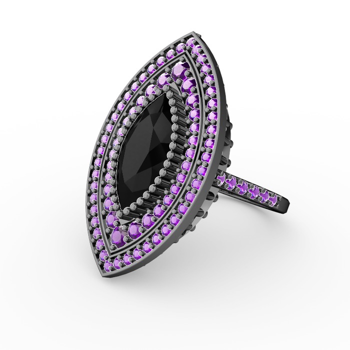 Siyah zirkon ve ametist 925 ayar siyah rodyum kaplama gümüş yüzük