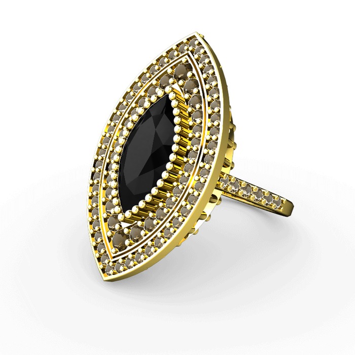 Siyah zirkon ve dumanlı kuvars 18 ayar altın yüzük