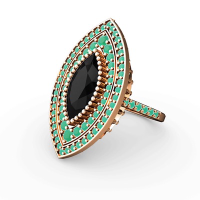 Siyah zirkon ve kök zümrüt 8 ayar rose altın yüzük
