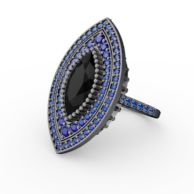 Siyah zirkon ve lab safir 925 ayar siyah rodyum kaplama gümüş yüzük