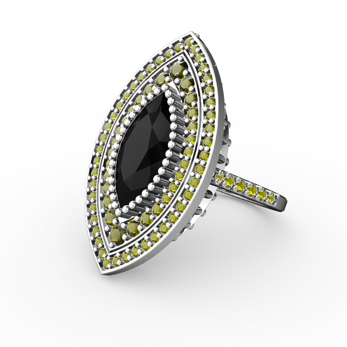 Siyah zirkon ve peridot 14 ayar beyaz altın yüzük