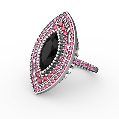 Siyah zirkon ve rodolit garnet 18 ayar beyaz altın yüzük