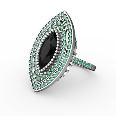 Siyah zirkon ve yeşil kuvars 18 ayar beyaz altın yüzük
