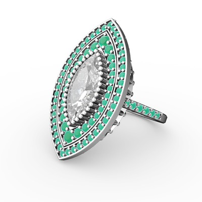 Swarovski ve kök zümrüt 14 ayar beyaz altın yüzük