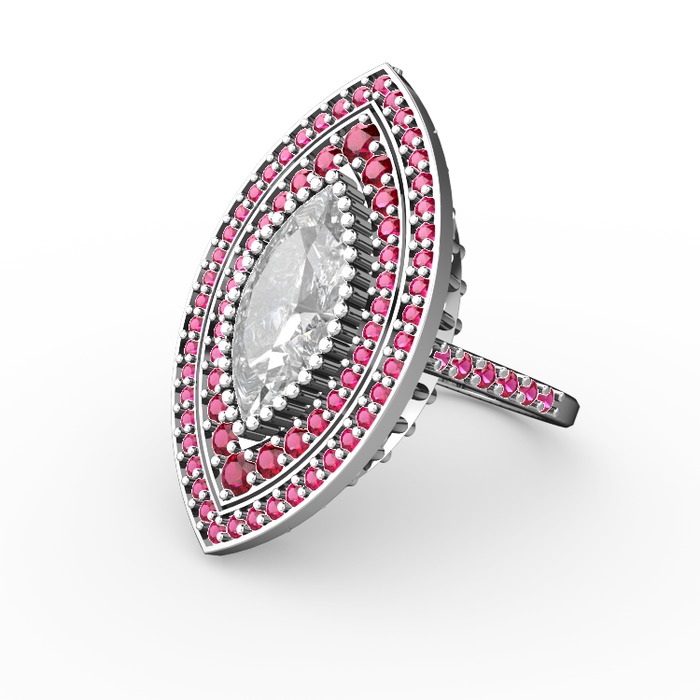 Swarovski ve rodolit garnet 18 ayar beyaz altın yüzük
