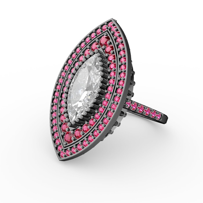 Swarovski ve rodolit garnet 925 ayar siyah rodyum kaplama gümüş yüzük