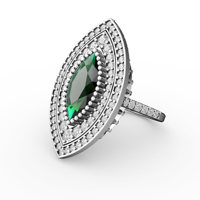 Yeşil kuvars ve beyaz zirkon 8 ayar beyaz altın yüzük