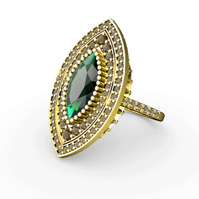 Yeşil kuvars ve dumanlı kuvars 18 ayar altın yüzük