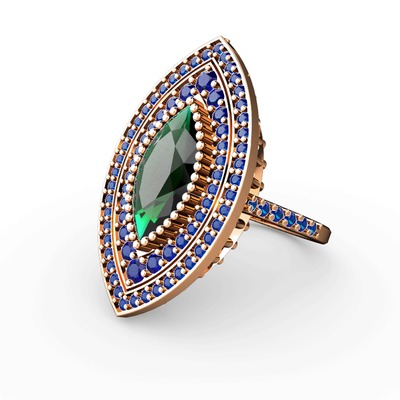 Yeşil kuvars ve lab safir 925 ayar rose altın kaplama gümüş yüzük