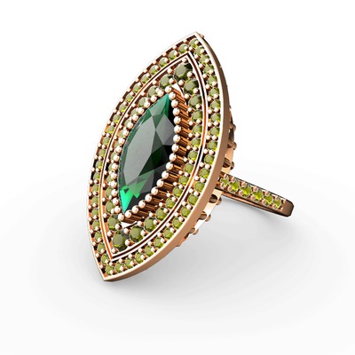 Yeşil kuvars ve peridot 14 ayar rose altın yüzük