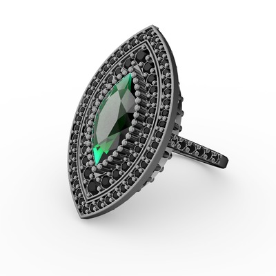 Yeşil kuvars ve siyah zirkon 925 ayar siyah rodyum kaplama gümüş yüzük