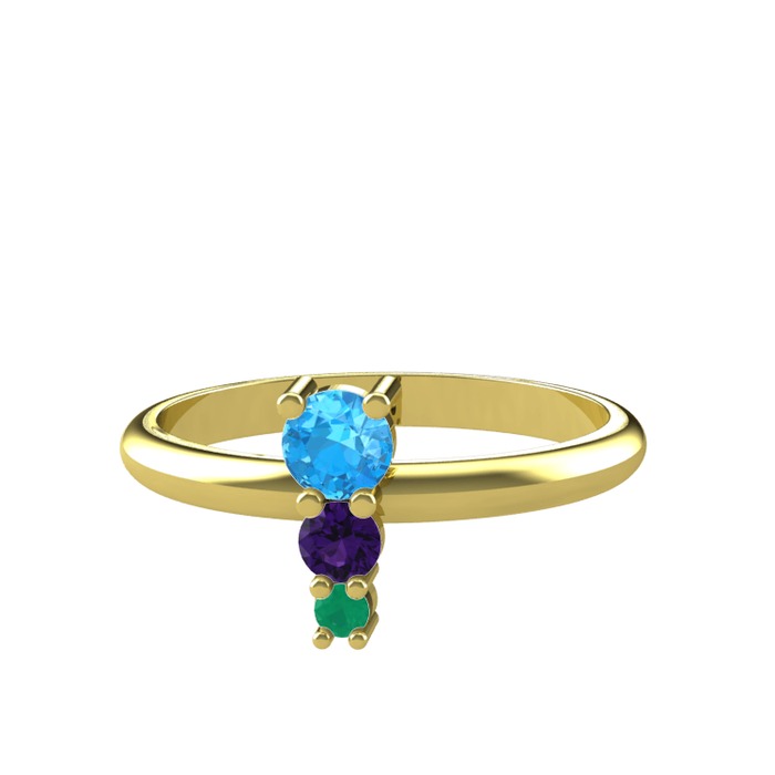 Akuamarin, ametist ve kök zümrüt 18 ayar altın yüzük