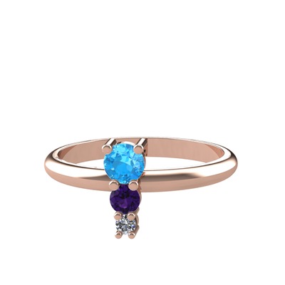 Akuamarin, ametist ve pırlanta 14 ayar rose altın yüzük (0.036 karat)