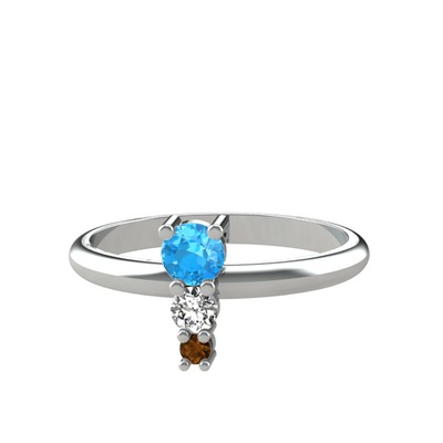Akuamarin, beyaz zirkon ve dumanlı kuvars 18 ayar beyaz altın yüzük