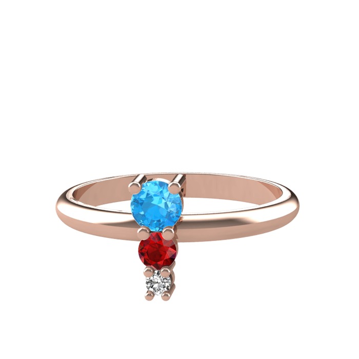 Akuamarin, garnet ve beyaz zirkon 14 ayar rose altın yüzük