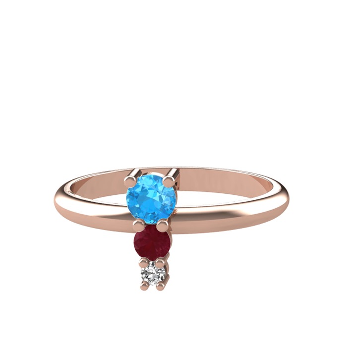 Akuamarin, kök yakut ve beyaz zirkon 14 ayar rose altın yüzük