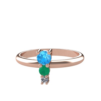 Akuamarin, kök zümrüt ve pırlanta 14 ayar rose altın yüzük (0.036 karat)