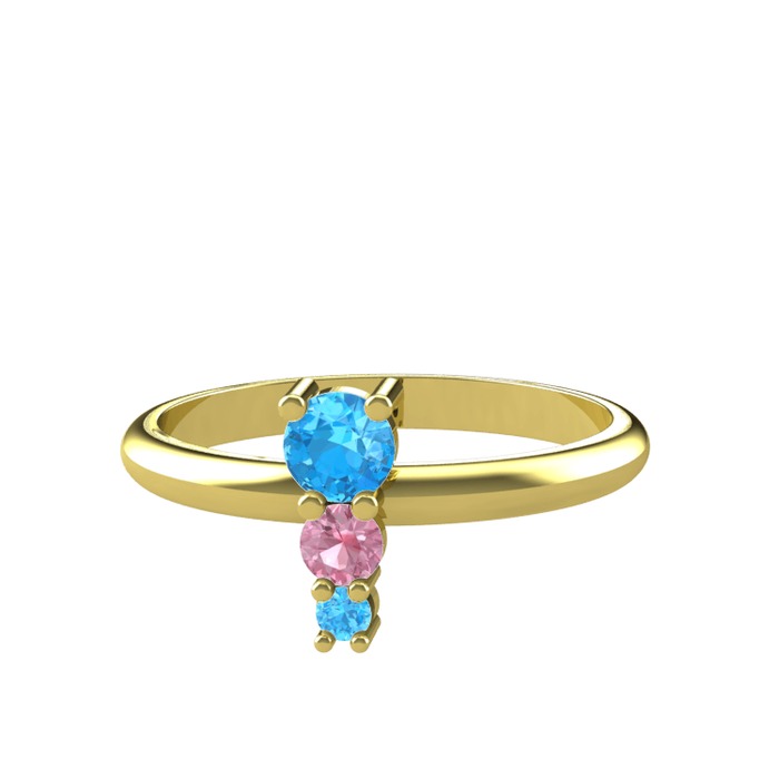 Akuamarin ve pembe kuvars 18 ayar altın yüzük
