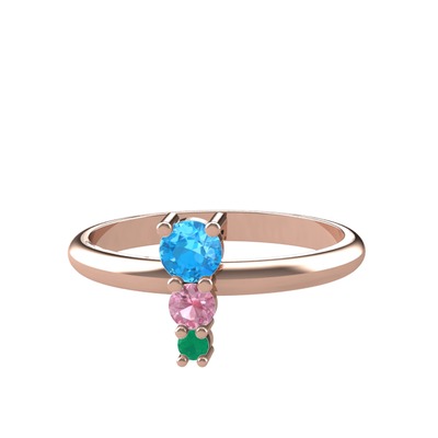 Akuamarin, pembe kuvars ve kök zümrüt 925 ayar rose altın kaplama gümüş yüzük
