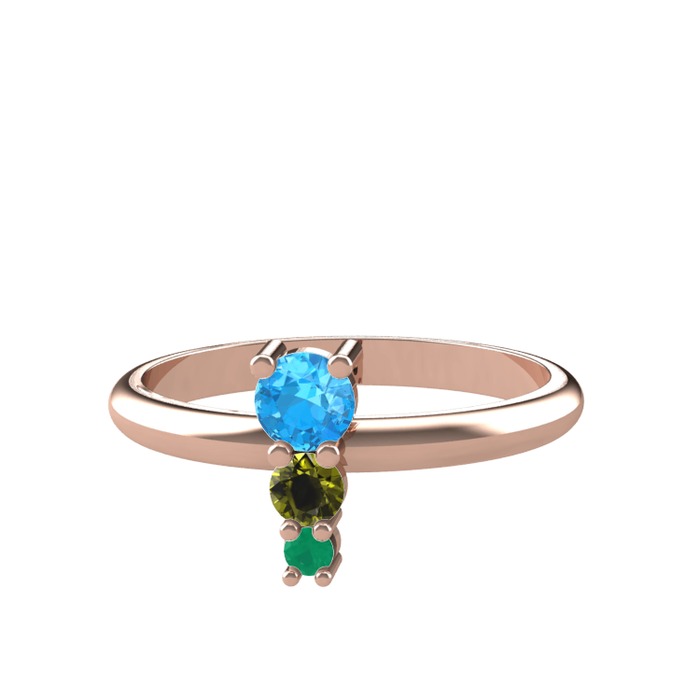 Akuamarin, peridot ve kök zümrüt 14 ayar rose altın yüzük
