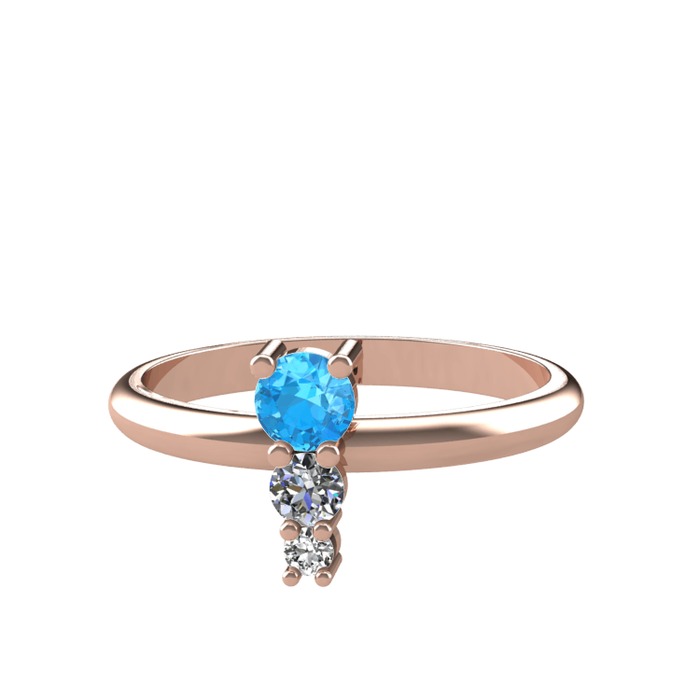 Akuamarin, pırlanta ve beyaz zirkon 18 ayar rose altın yüzük (0.11 karat)