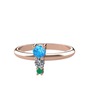 Akuamarin, pırlanta ve kök zümrüt 14 ayar rose altın yüzük (0.11 karat)