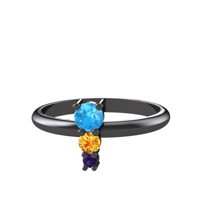 Akuamarin, sitrin ve ametist 925 ayar siyah rodyum kaplama gümüş yüzük