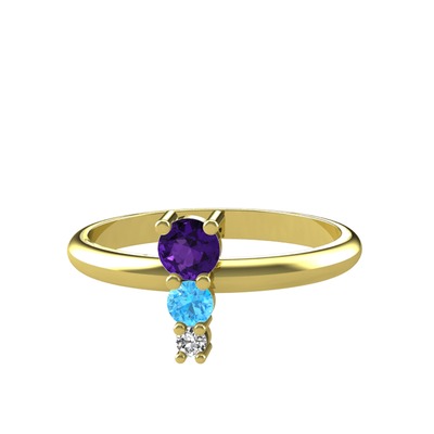 Ametist, akuamarin ve swarovski 14 ayar altın yüzük