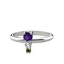Ametist, beyaz zirkon ve peridot 14 ayar beyaz altın yüzük