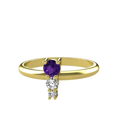 Ametist, beyaz zirkon ve swarovski 925 ayar altın kaplama gümüş yüzük