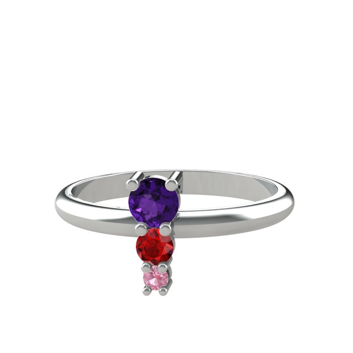 Ametist, garnet ve pembe kuvars 8 ayar beyaz altın yüzük