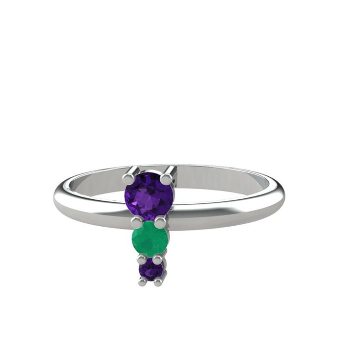 Ametist ve kök zümrüt 8 ayar beyaz altın yüzük