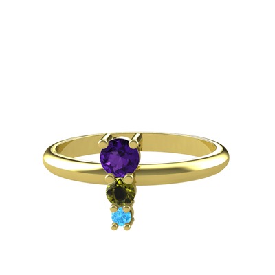 Ametist, peridot ve akuamarin 18 ayar altın yüzük