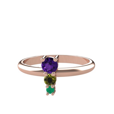 Ametist, peridot ve kök zümrüt 18 ayar rose altın yüzük