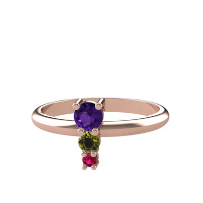Ametist, peridot ve rodolit garnet 14 ayar rose altın yüzük