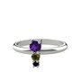 Ametist, peridot ve siyah zirkon 18 ayar beyaz altın yüzük
